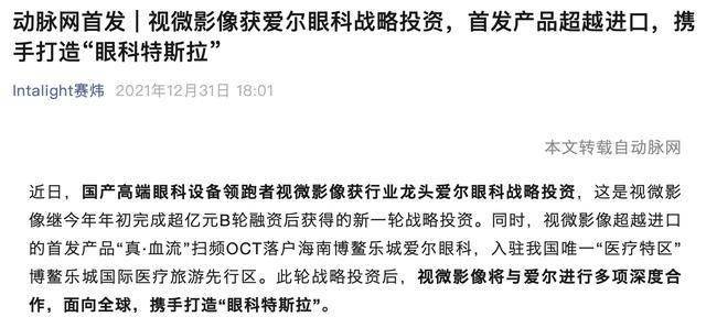 值得一提的是,自成立以来,赛炜科技完成多轮融资。2021年,其获行业龙头爱尔眼科战略投资,同时首发产品“真·血流”扫频OCT落户海南博鳌乐城爱尔眼科。