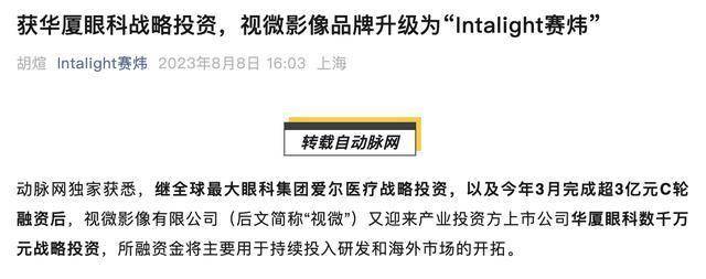 2023年8月,赛炜科技又迎来产业投资方上市公司华厦眼科数千万元战略投资,所融资金将主要用于持续投入研发和海外市场的开拓。