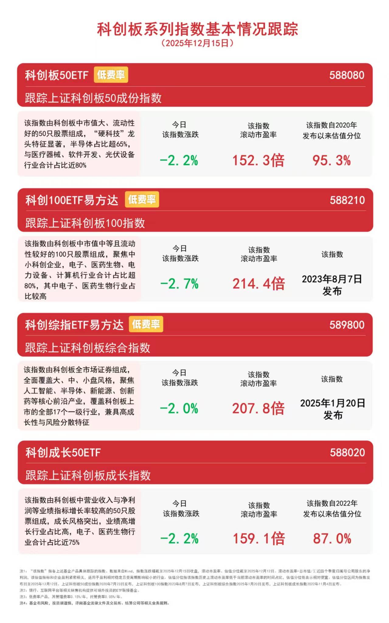 今日泛科技方向表现弱势,半导体、CPO、新能源、创新药等板块集体调整。截至收盘,科创综指下跌2.0%,科创板50指数、科创成长指数均下跌2.2%,科创100指数下跌2.7%。Wind数据显示,科创板50ETF(588080)上周合计“吸金”近10亿元,净流入额在所有科创板相关ETF中位居第一。