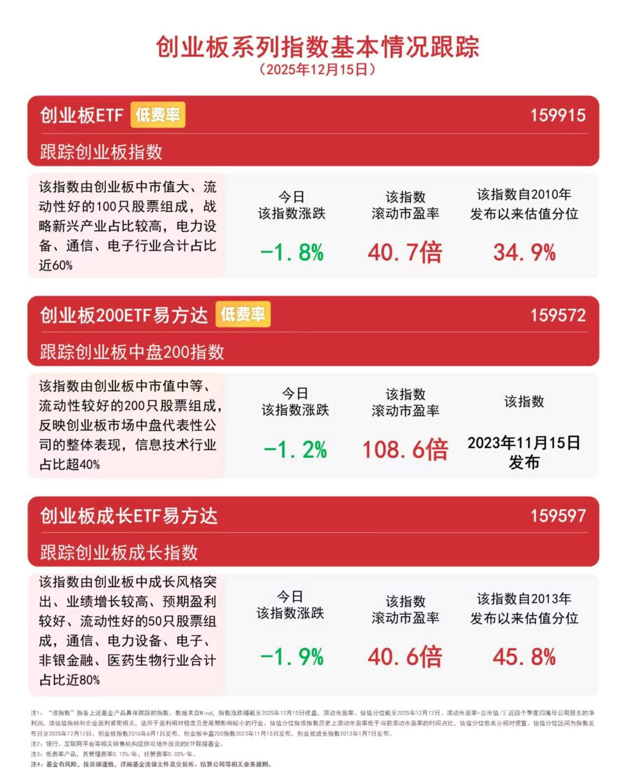 截至收盘,创业板中盘200指数下跌1.2%,创业板指数下跌1.8%,创业板成长指数下跌1.9%,相关ETF获资金逆势加仓,创业板ETF(159915)获1.4亿份净申购。