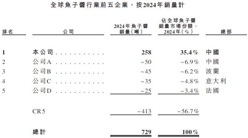 据灼识咨询数据显示,自2015年起,鲟龙科技已连续十年蝉联全球鱼子酱销量冠军,2024年全球市场份额高达35.4%。