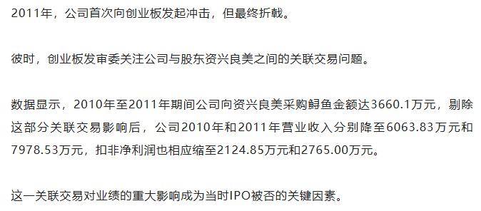 据《豹速科技财经》等整理,鲟龙科技首次冲击创业板发生在2011年10月,彼时其与股东资兴良美的关联交易成为致命伤。此举严重削弱了鲟龙科技业绩的独立性与真实性,首次冲关遂告失败。