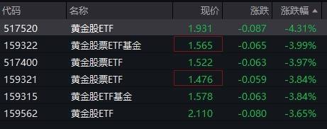 黄金概念股震荡走低,中金黄金、赤峰黄金跌超5%,山东黄金、紫金矿业、湖南黄金跌超4%。