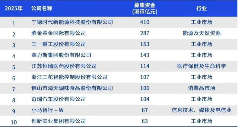 年内,包括宁德时代、三一重工、赛力斯、恒瑞医药、三花智控、海天味业、奇瑞汽车及紫金矿业在内的八家市值均达“百亿级别”的行业巨头,相继成功在香港资本市场挂牌交易。