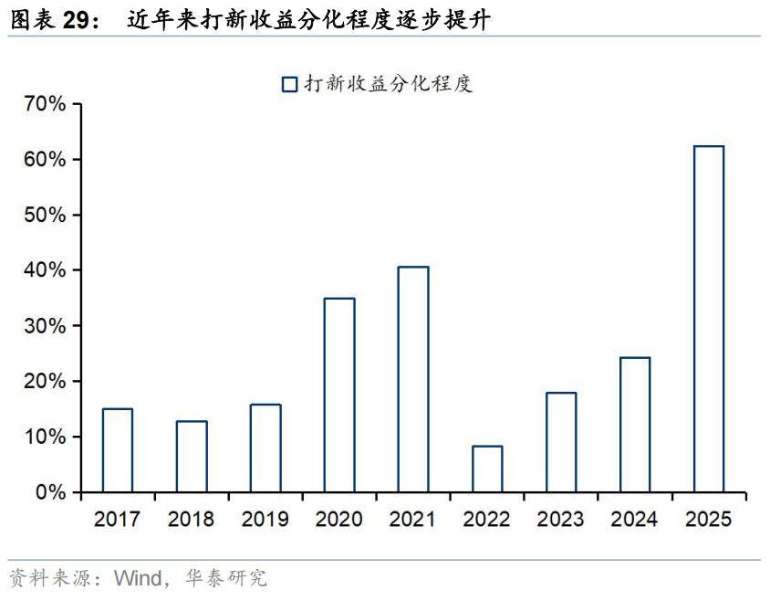 与之相呼应的是,今年港股打新的胜率和表观收益率也较过去数年明显提升。一方面港股打新的热度明显提升,体现为平均一手中签率显著回落至20%,为近10年来最低。另一方面,中签后的打新胜率和表观收益率则显著提升,分别升至73%(vs 2024年的64%)和34%(vs 2024年的8%)。这使得投资者对于港股打新的关注度显著提升。