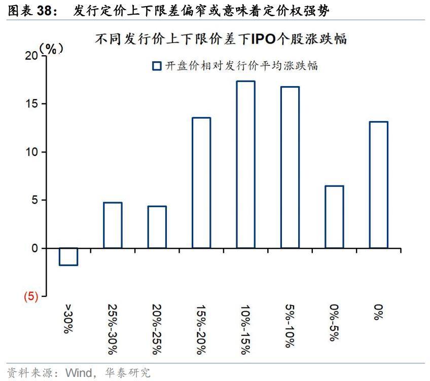 2)定价价差方面,过高的上下限价差区间(超过20%)的开盘收益显著偏低,其逻辑或在于招股价的区间上下限价差或暗示定价信心,而定价价差的偏窄或是定价权强势的表现,对应IPO的质量或相对更高;