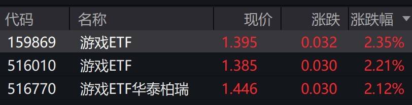 受盘面影响,游戏ETF涨超2%。