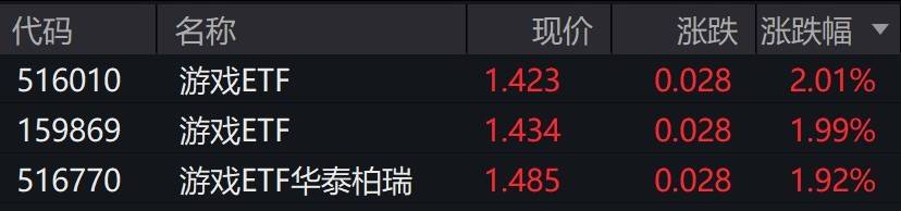 受盘面影响,游戏ETF涨约2%。