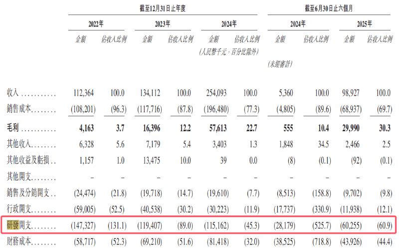 招股书显示,主线科技研发开支同比缩减。从2022年至2024年,主线科技的研发开支分别为1.47亿元、1.19亿元和1.15亿元,研发费用率也从131.1%骤降至45.3%。