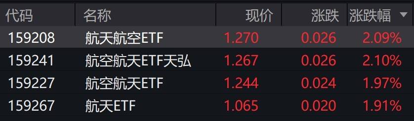 受盘面影响,航空航天相关ETF涨约2%。