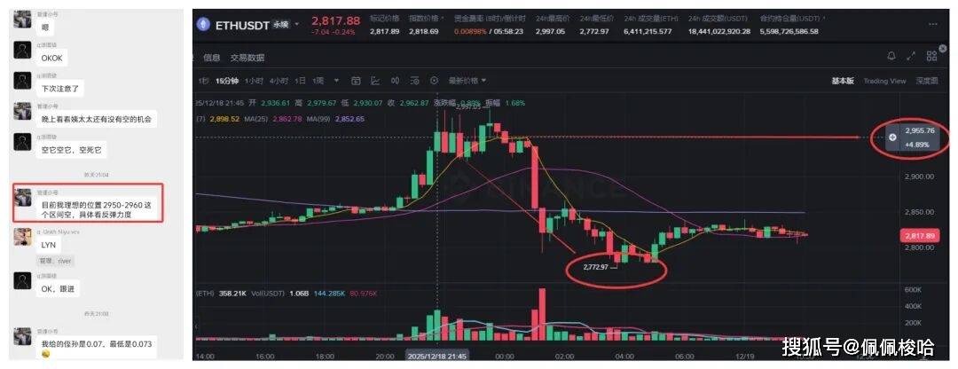 ETH空单,给出的位置是2950-2960区间做空,也就是白天多单的直营目标位,晚间最低2772