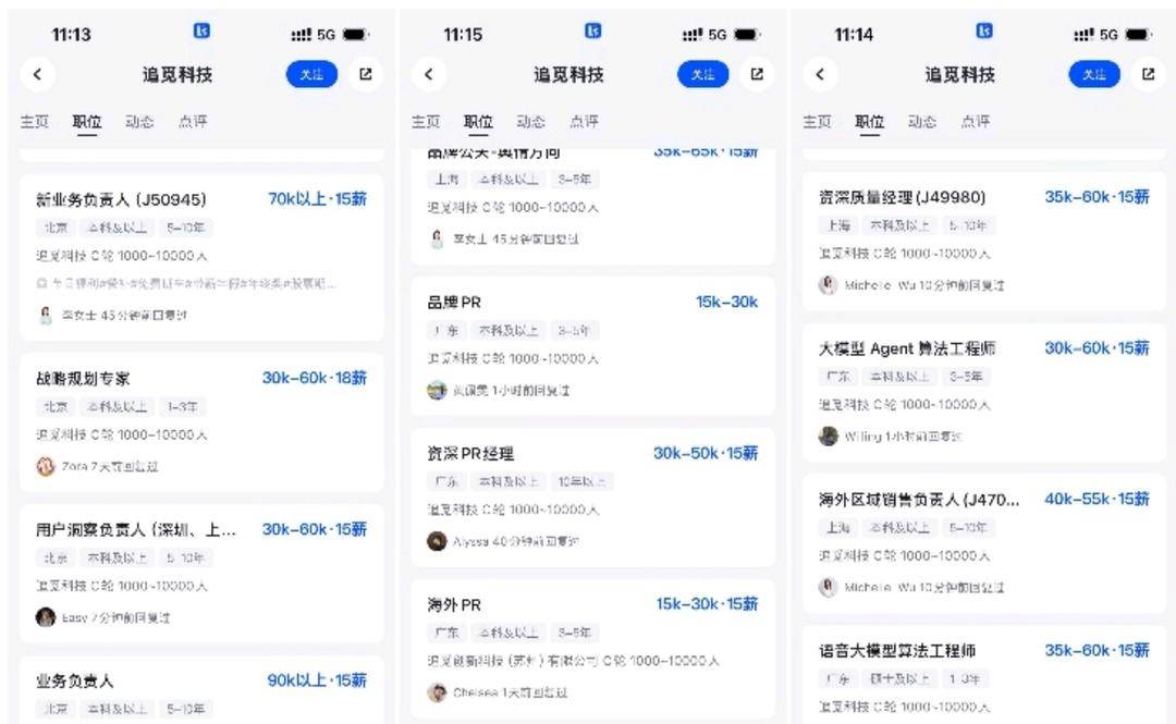 记者注意到,随着生态布局不断扩大,追觅科技近期在脉脉上密集发布岗位。