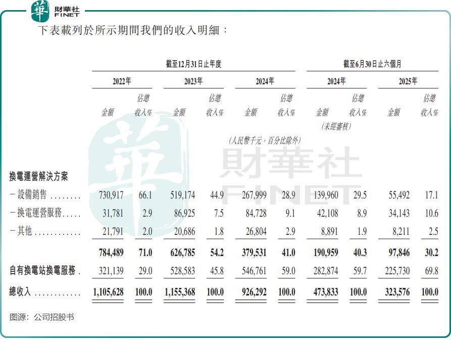 这一变化导致奥动新能源的产能利用率大幅下滑,换电站生产利用率从2022年的80.7%骤降至2025年上半年的23.4%,换电模块利用率也从89.7%跌至23.9%。产能闲置推高了公司单位成本的同时,设备销售收入也连续三年萎缩,到2025年上半年仅占总营收的17.1%。