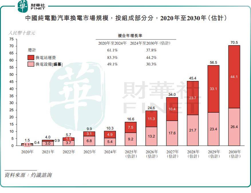 随着纯电汽车销量爆发,补能焦虑成为行业痛点,换电模式被视为关键解决方案之一。数据显示,中国换电行业市场规模已从2020年的15亿元增长至2024年的103亿元,预计到2030年将达到705亿元,2024年至2030年复合增长率高达37.8%。