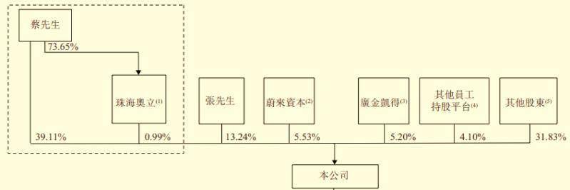 截至目前,蔡东青直接拥有奥动39.11%的股份,并通过员工持股平台珠海奥立持有0.99%的股份,联合创始人张建平则拥有13.24%的股份。