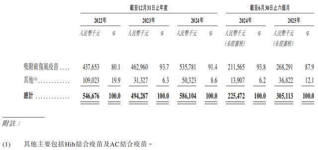 2022年-2024年及2025年1-6月(简称:报告期),欧林生物收入分别为5.47亿元、4.94亿元、5.86亿元、3.05亿元,其中吸附破伤风疫苗是绝对的核心支柱,产品单价和市场份额都领先于另外两款产品。