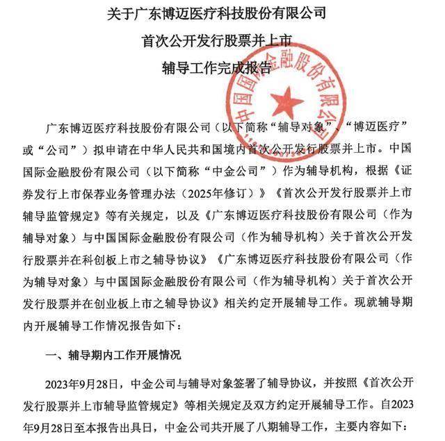 瑞财经 吴文婷 近日,广东博迈医疗科技股份有限公司(以下简称“博迈医疗”)披露IPO辅导工作完成报告,辅导机构为中国国际金融股份有限公司。