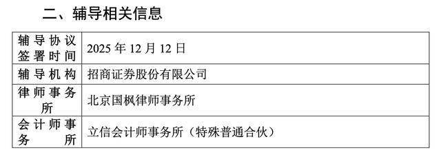 本次IPO的辅导机构招商证券股份有限公司,律师事务所为北京国枫律师事务所,会计师事务所为立信会计师事务所(特殊普通合伙)。