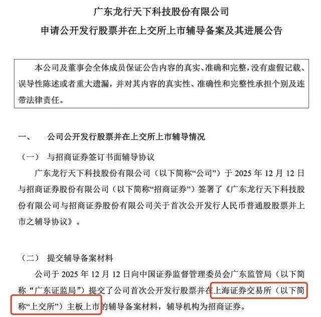 瑞财经 吴文婷12月17日,广东龙行天下科技股份有限公司(以下简称“龙行天下”)启动IPO,拟冲刺上交所主板。