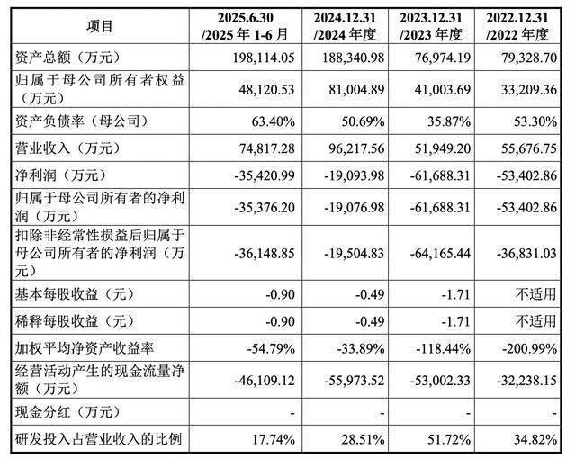 业绩方面,2022年-2024年及2025上半年,大普微实现营业收入分别为5.57亿元、5.19亿元、9.62亿元、7.48亿元;归母净利润分别为-5.34亿元、-6.17亿元、-1.91亿元、-3.54亿元,尚未实现盈利。
