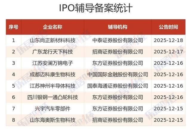 另外,截止统计时间,IPO辅导备案增加8家,环比下降27.27%。