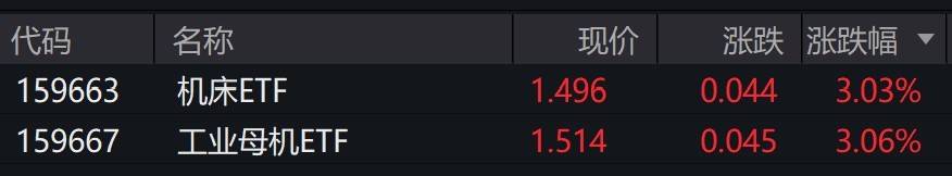 受盘面影响,机床ETF、工业母机ETF涨超3%。