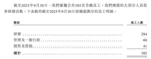 截至2025年9月底,MiniMax共有员工385人,平均年龄29岁,研发人员占比近74%,董事会平均年龄32岁。