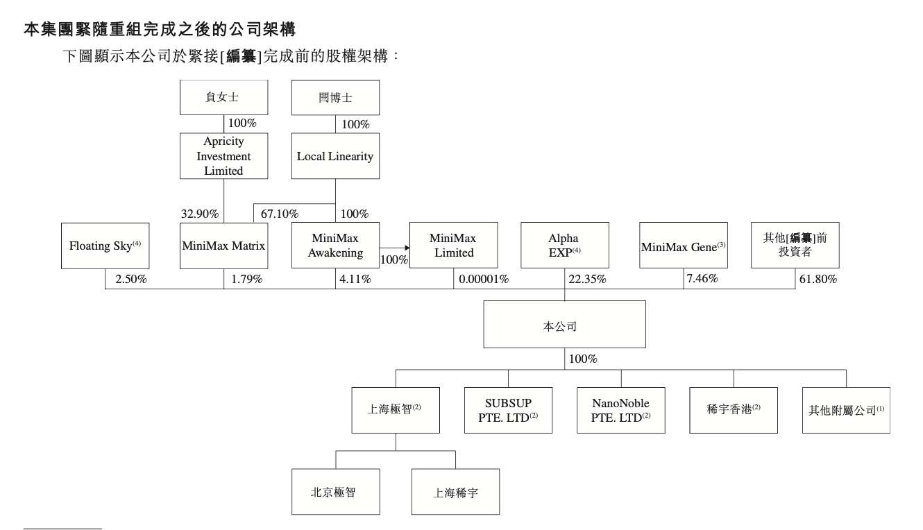 MiniMax在IPO前共完成了7轮融资,累计筹资约15.56亿美元,最后一轮投后估值为42.4亿美元。截至最后实际可行日期,闫俊杰通过其控制的实体合计持股超28%,执行董事、首席运营官贠烨祎间接持股2.5%。此外,阿里巴巴持股13.66%、米哈游持股6.4%、IDG持股2.8%、腾讯持股2.58%。