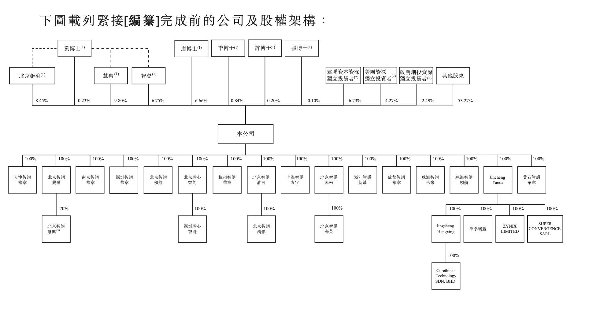 截至最后实际可行日期,智谱控股股东包括北京链湃、刘德兵、唐杰、李涓子、许斌、张鹏、慧惠、智登,合计持有公司33.03%的股份。其中,北京链湃、慧惠及智登均为智谱联合创始人、执行董事兼董事长刘德兵实际控制的平台。资深独立投资者包括持股6.73%的君联资本、持股4.27%的美团、持股2.49%的启明创投。