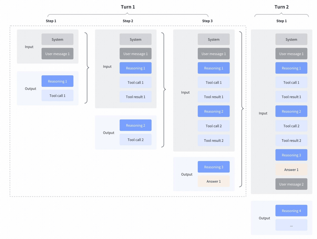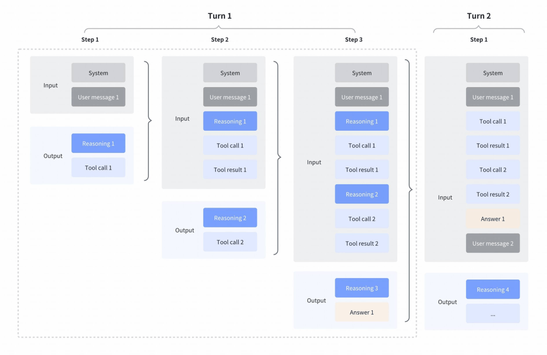 模型会自动在多回合对话中保留所有思考快,复用已有推理而不是从头重新推理。这减少了信息丢失和不一致性,使得模型更适用于长程、复杂任务。还能在真实任务中节省更多tokens。