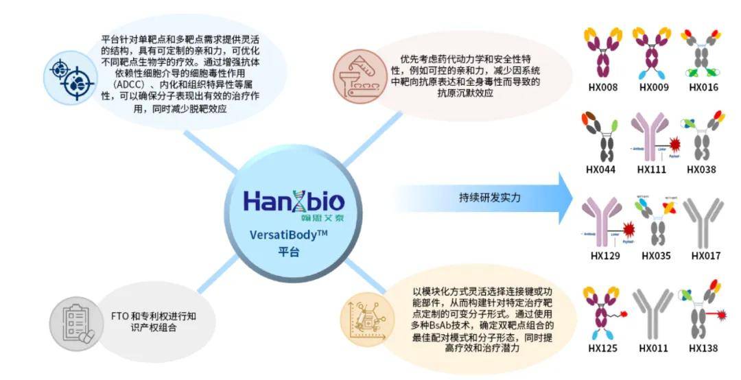 支撑这些创新分子诞生的,是公司自主研发的VersatiBody™抗体工程平台。该平台的特点在于高度的模块化和灵活性,能够支持多样化的双特异性抗体形式设计,并能根据靶点生物学特性优化分子的稳定性、疗效和安全性。