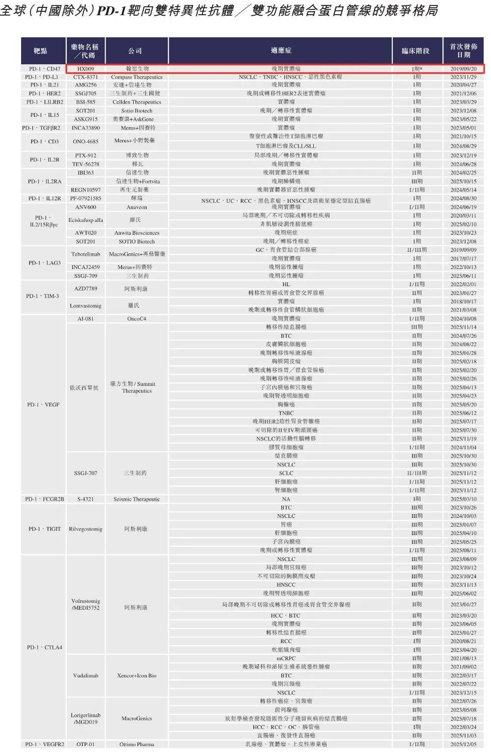 值得一提的是,HX009在临床开发策略上采取了差异化的“由小及大”路径。公司优先推进其在EBV阳性非霍奇金淋巴瘤、晚期黑色素瘤等缺乏有效疗法的适应症上的临床研究。Ⅰ期临床试验数据显示,HX009安全性良好,未出现传统CD47抗体常见的严重贫血等血液毒性,且在多个难治性肿瘤中观察到初步抗肿瘤活性信号。