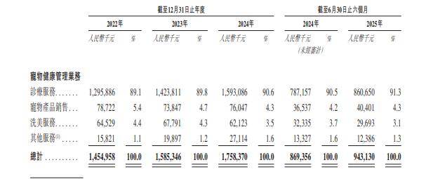 招股书介绍,瑞派宠物医院于2012年成立,是中国首家实现全国连锁化运营的宠物医疗服务提供商,为宠主宠物提供高标准诊疗及全生命周期健康管理服务。按宠物医院产生的收入计,公司于2024年占中国宠物医疗行业的市场份额为4.8%。