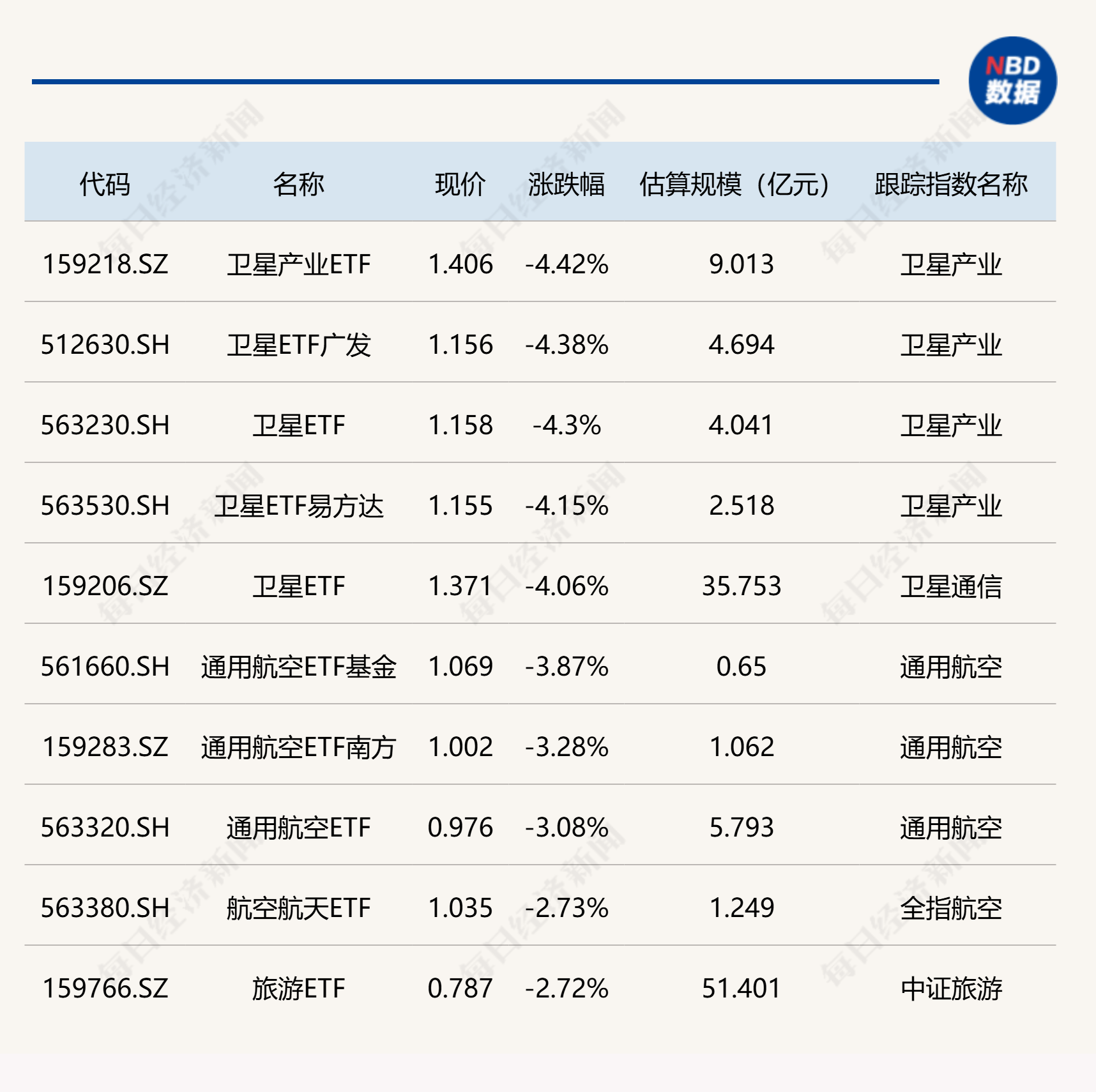 下跌方面,卫星相关ETF跌超4%。