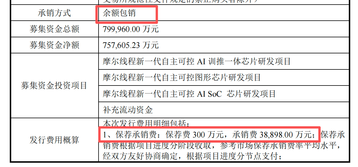 摩尔线程由中信证券担任保荐人、主承销商,其余三家券商即招商证券、中银国际证券、广发证券担任副主承销商。