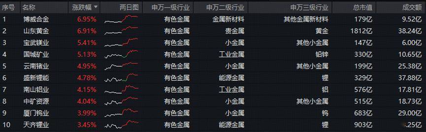 图:有色ETF华宝标的指数涨幅前10大成份股