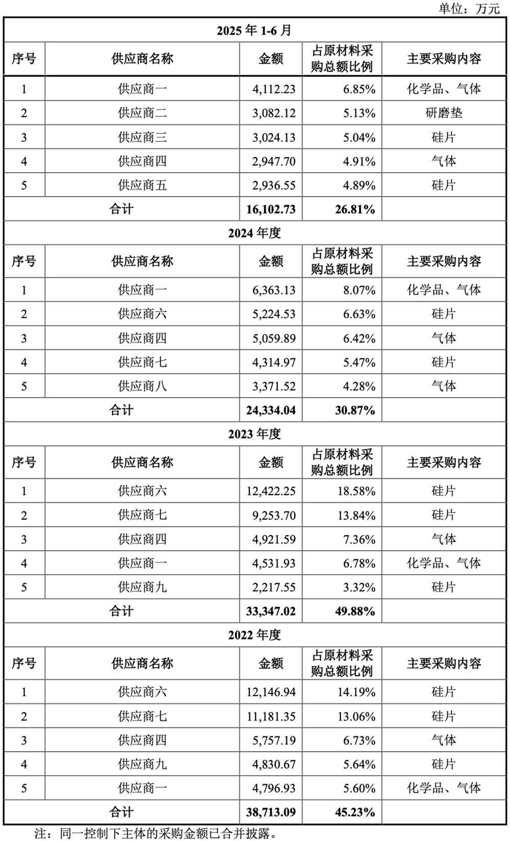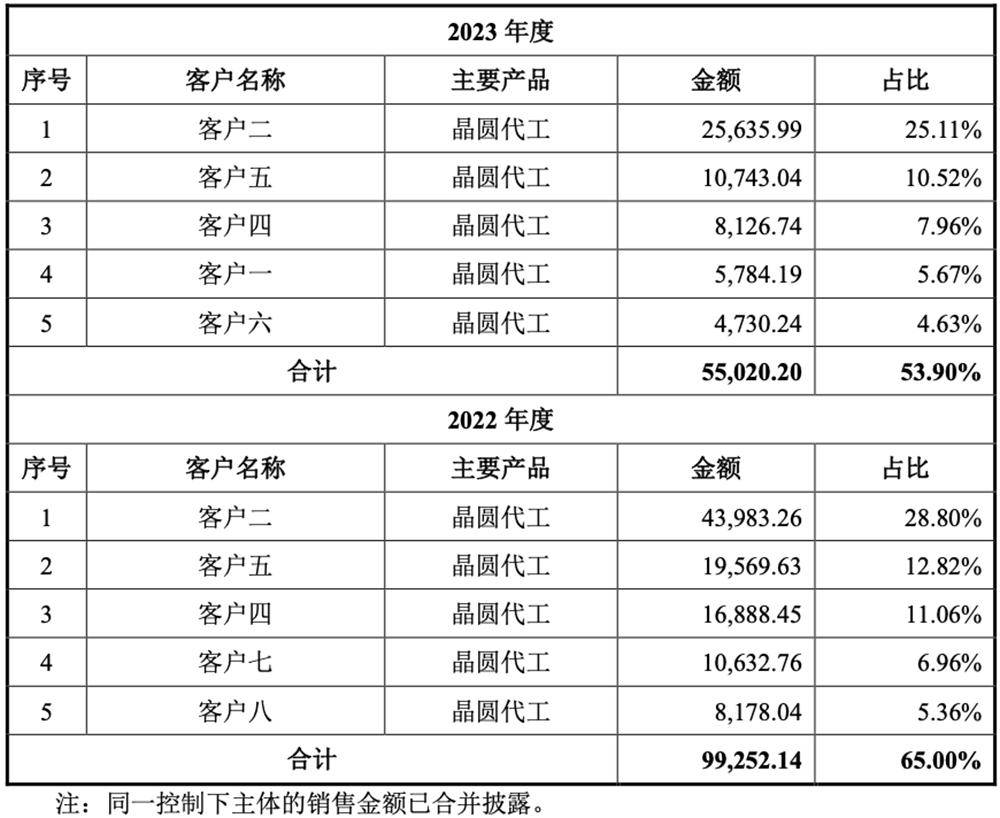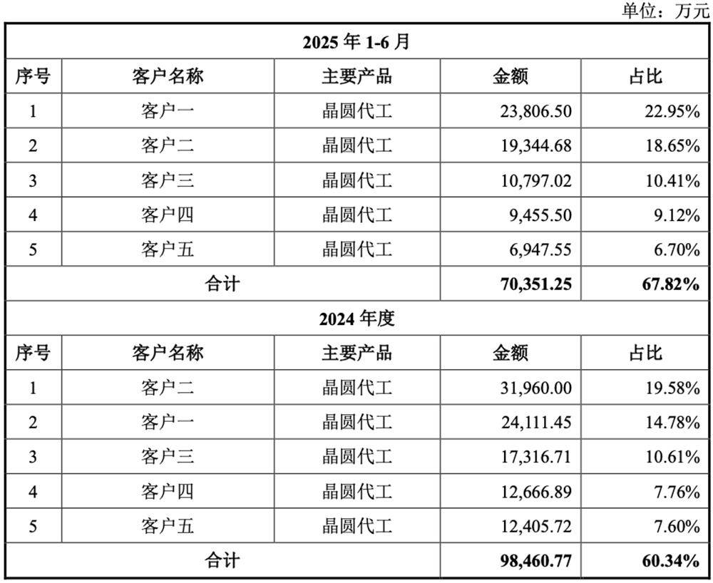 2022年、2023年、2024年、2025年1-6月,其前五大客户的主营业务收入合计占主营业务收入的比例分别为65.00%、53.90%、60.34%、67.82%,客户集中度较高。