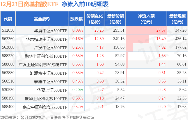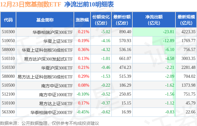 【ETF观察】12月23日宽基指数ETF净流出15.34亿元