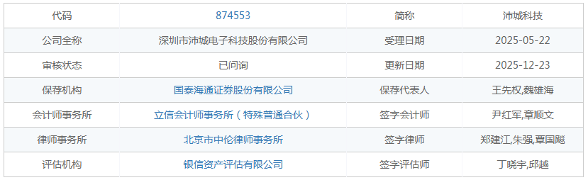 12月23日,据北交所官网,深圳市沛城电子科技股份有限公司(下称“沛城科技”)披露上会稿。北京证券交易所上市委员会定于2025年12月30日上午9时召开2025年第51次审议会议,审议沛城科技。