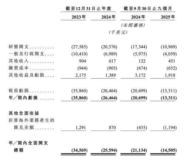 2023年-2024年,公司分别录得亏损3586万美元及2646.4万美元,而截至2024年及2025年9月30日止九个月则分别录得亏损2069.9万美元及1331.1万美元。