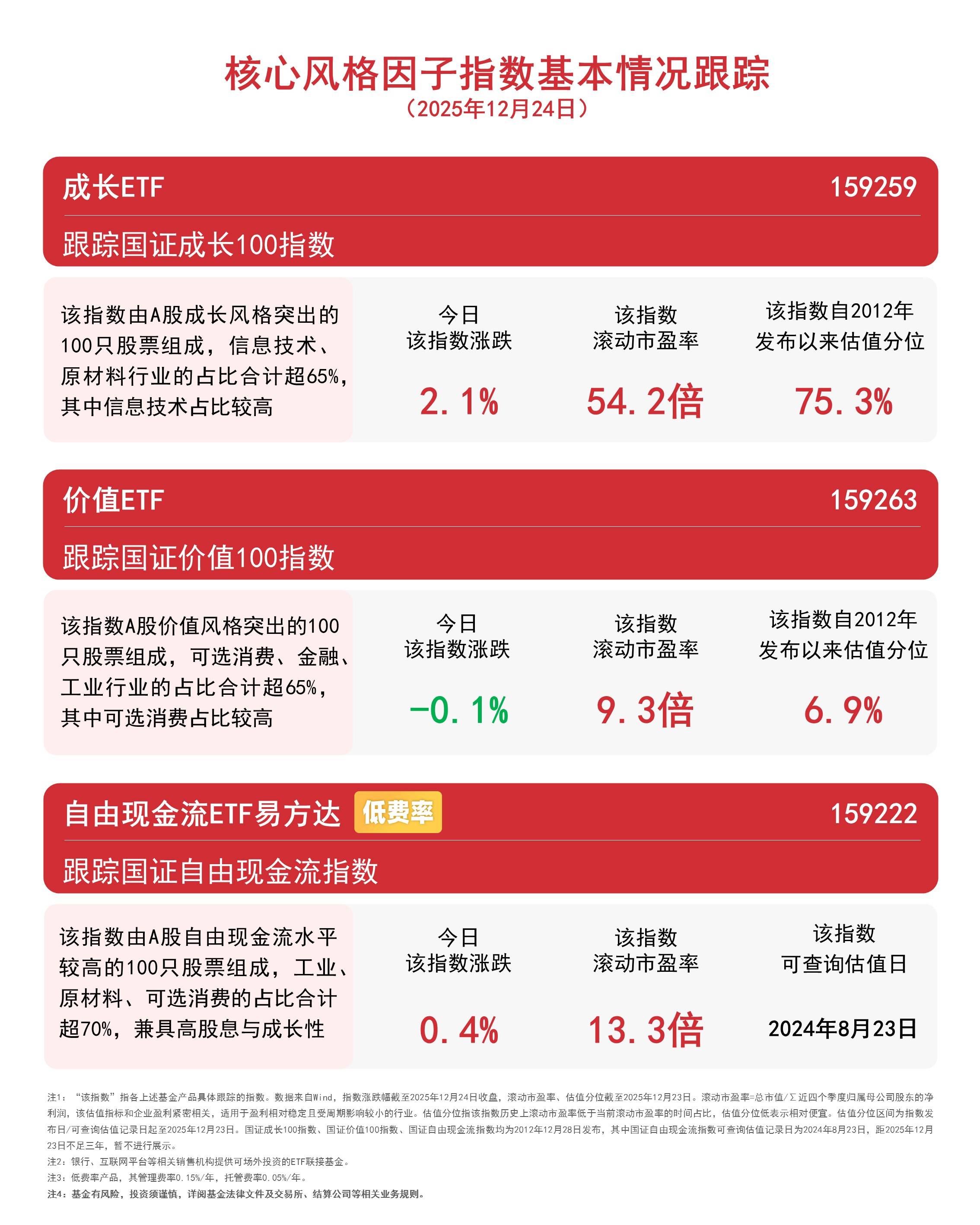 市场今日震荡上行,科技成长股多数上涨,卫星互联网、商业航天概念高开高走,PCB、HBM、覆铜板等概念午后拉升。指数层面,国证成长100指数上涨2.1%,国证自由现金流指数上涨0.4%,国证价值100指数下跌0.1%。