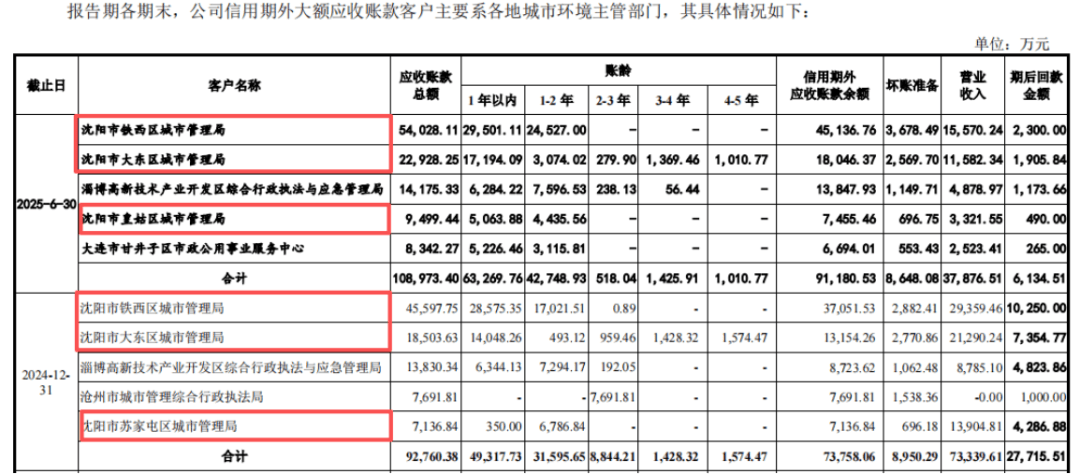 截至2024年末,中环洁逾期应收账款已达12.74亿,占应收账款总额的72.7%;且至2025年8月,这些逾期款项中仅有37.8%在期后得以收回。