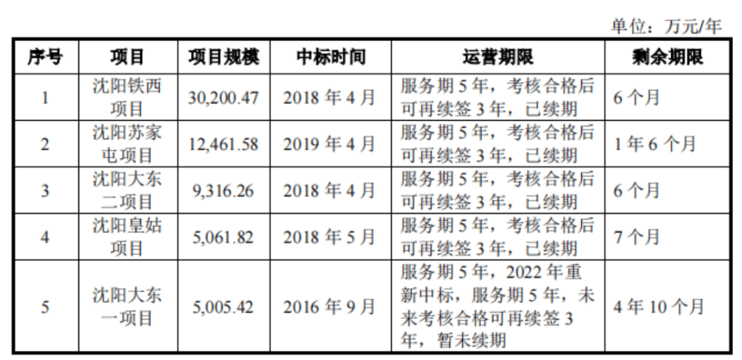 更揪心的是,中环洁的几个高毛利沈阳主力项目,有3个将于2026年到期,1个将于2027年到期,四个项目合计年化金额高达5.71亿。