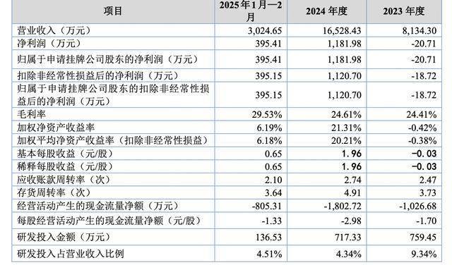 业绩方面,2023年-2024年及2025年前两个月,毫厘技术实现营收分别为8134.30万元、1.65亿元、3024.65万元;归母净利润分别为-20.71万元、1181.98万元、395.41万元。