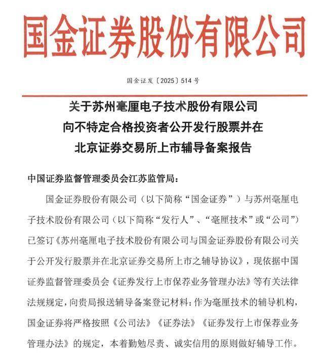 瑞财经 吴文婷12月23日,苏州毫厘电子技术股份有限公司(以下简称“毫厘技术”)启动IPO,拟冲刺北交所