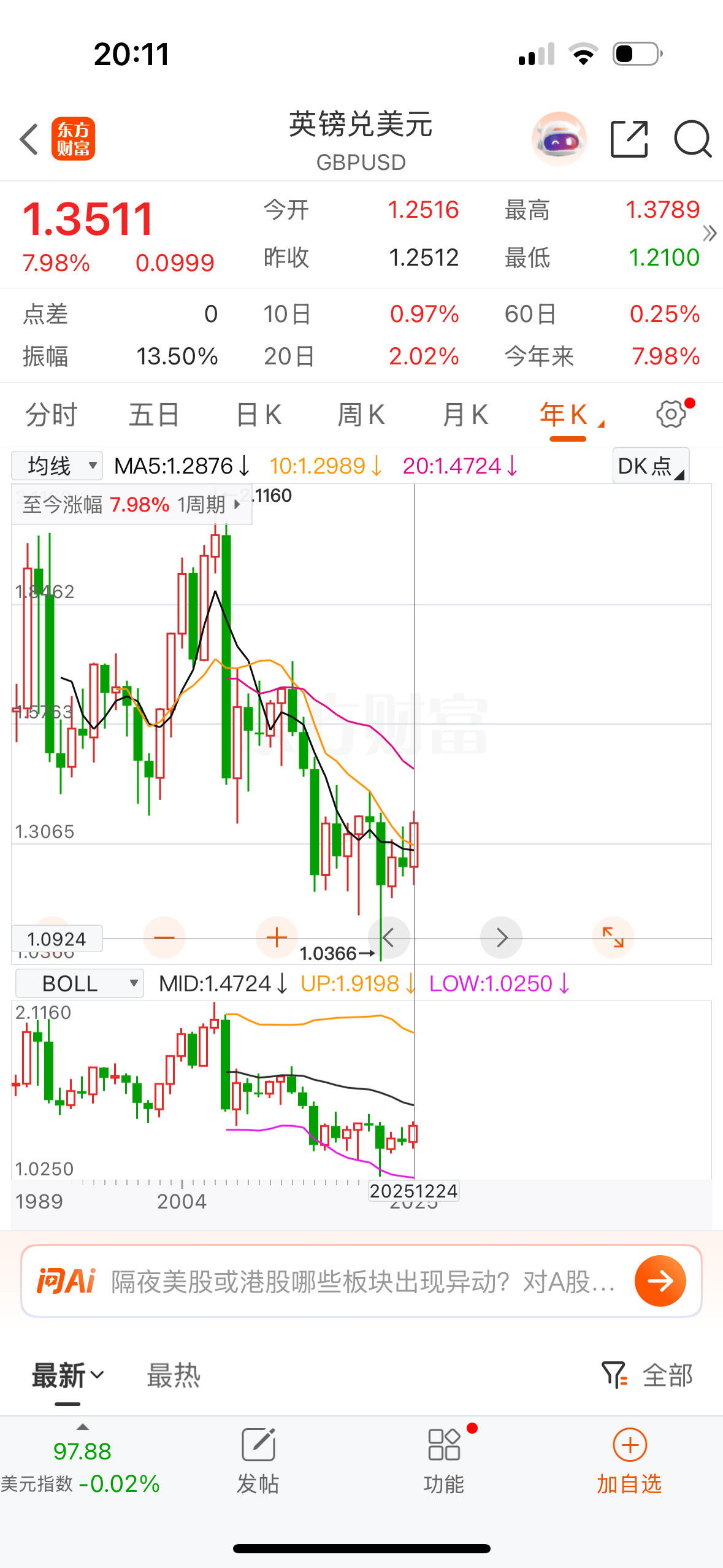 今年以来到记者截稿时止,美元指数累计下跌了9.78%,意味着美元对全球主要货币出现大幅贬值,其中欧元对美元升值13.89%,英镑对美元升值7.98%,澳元对美元升值8.47%。