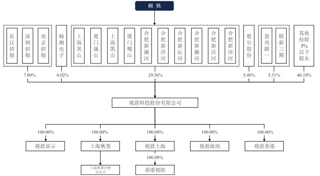 视涯科技控股股东的一致行动人合计持有视涯科技12,372.5921万股股份,占视涯科技股本总额的13.75%。