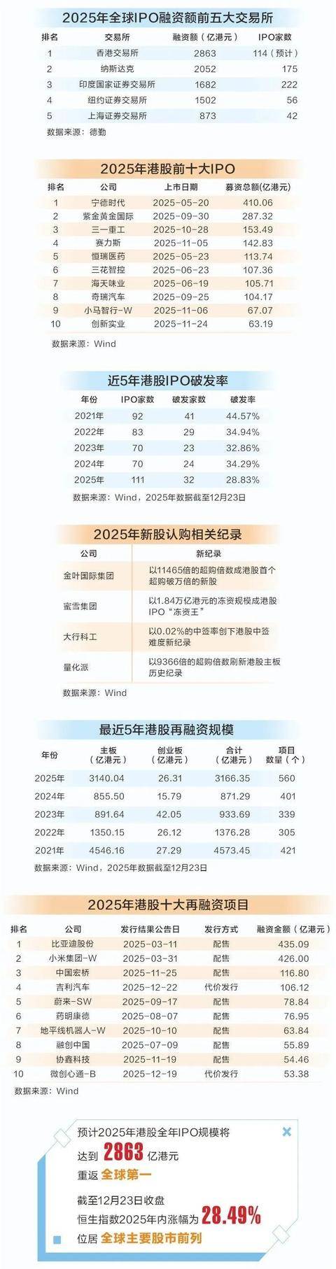 而在今年,在宁德时代等一批大型IPO的带动下,港股IPO规模持续高歌猛进,预计2025年港股全年IPO规模将达到2863亿港元,重返全球第一。此前的2015年、2016年、2018年和2019年,港股IPO规模曾雄冠全球。