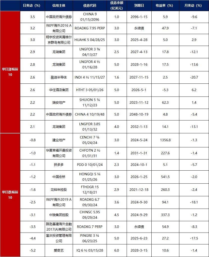 3. 中资美元债每日价格变动(截至12月24日收盘)