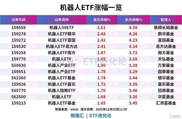 机器人ETF易方达等跟踪的国证机器人产业指数聚焦人形机器人产业链中“机器人本体+核心零部件”等核心环节,人形机器人含量超过76%,显著高于同类指数;成份股涵盖双环传动、科沃斯、绿的谐波、机器人、石头科技等细分领域龙头。